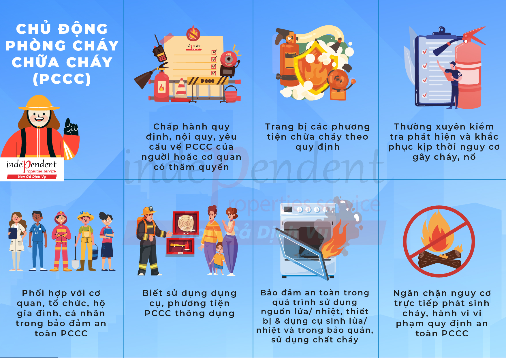 Chấp hành nội quy, quy định và yêu cầu về Phòng cháy chữa cháy (PCCC) của các cá nhân là cực kỳ quan trọng để đảm bảo an toàn và bảo vệ tài sản cũng như tính mạng của bản thân và gia đình. Dưới đây là một số biện pháp chủ động PCCC mà mỗi người hoặc tổ chức có thể thực hiện: